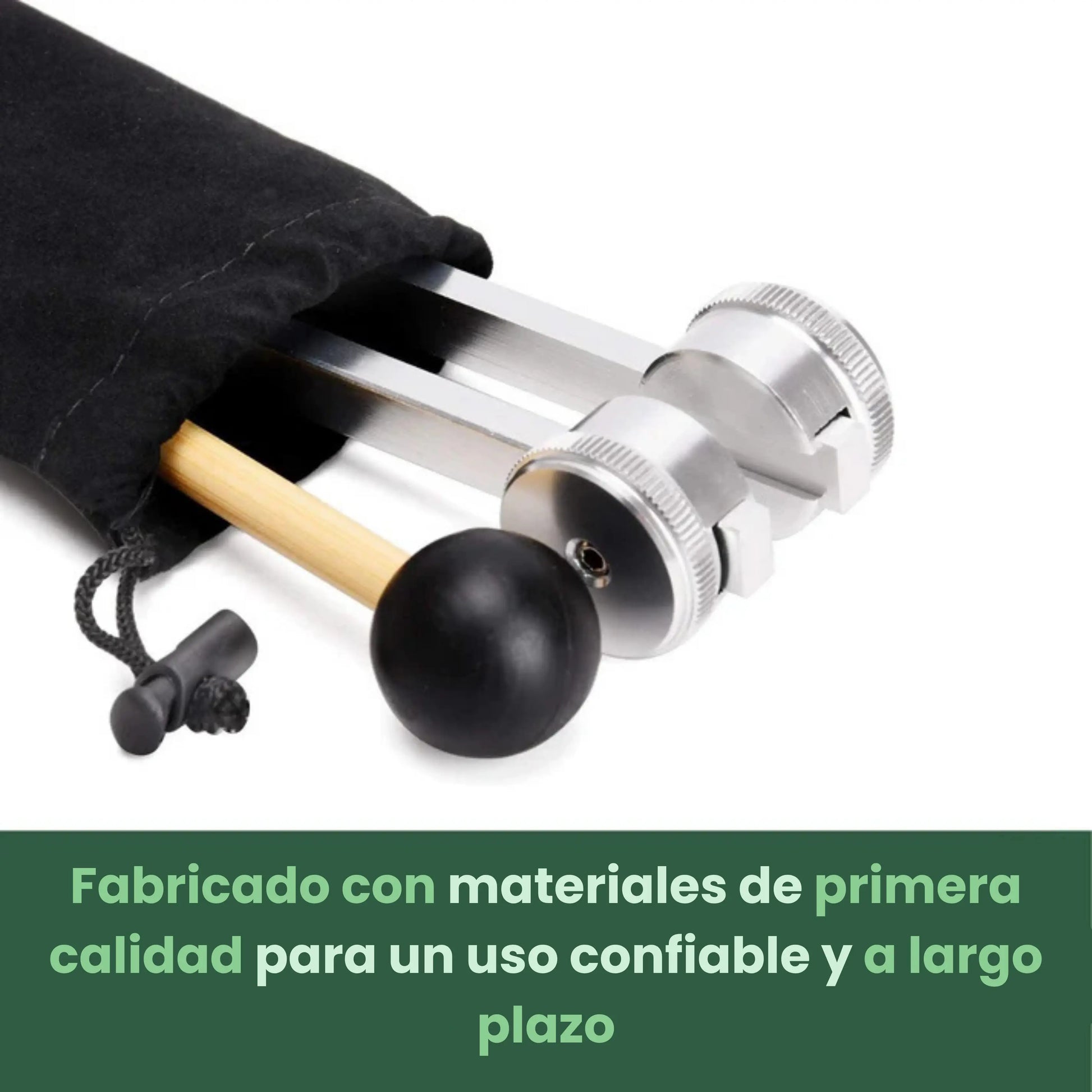 Golpea suavemente el diapasón y aplica el extremo vibratorio en tus zonas doloridas. Siente cómo las vibraciones penetran profundamente para una comodidad duradera.